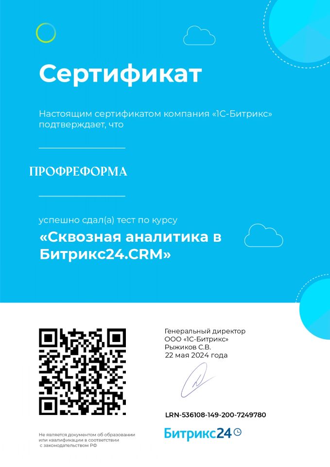 компания Профреформа - сертифицированный партнер компании Битрикс24